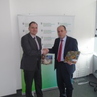 14.03.2017. Në kuadër të vizitës zyrtare në Republikën e Kroacisë, Ministri i Mjedisit dhe Planifikimit Hapësinorë, z.Ferat Shala, është pritur sot nga Ministri i Mjedisit dhe Energjisë së Kroacisë z.Slaven Dobrović. Fillimisht ministri Shala ka falënderuar homologun e tij Dobrović, për mikpritjen dhe gatishmërinë për bashkëpunim në mes dy ministrive, duke vlerësuar lartë kontributin e shtetit kroat për Kosovën në të gjitha fazat e zhvillimit. “Sot jemi këtu më shumë për të njohur dhe për të shikuar mundësitë e bashkëpunimit dhe shkëmbimit të përvojave”, ka thënë Shala.